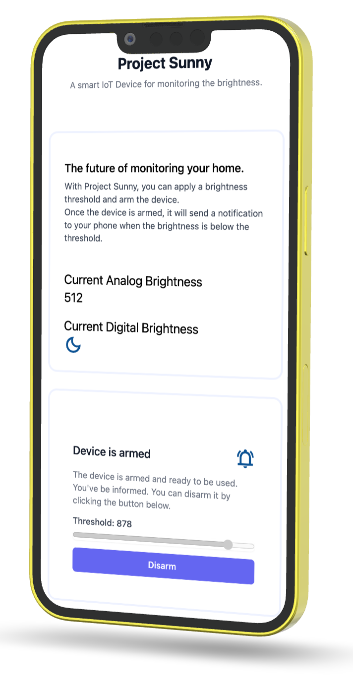 The final step was to add an user interface. For this i settled with svelte and tailwindcss. Below you can see the result if viewed on mobile and the device is armed.