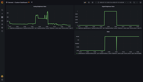 For this prototype i decided to try out Prometheus and Grafana. With those two tools i don’t have to bother about the limited on device resources anymore.